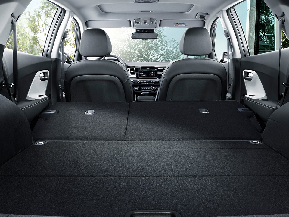 En el interior se percibe una alta calidad en los acabados, materiales blandos en las partes superiores, tapizados de cuero en el volante y en los paneles de las puertas. Los asientos realmente cómodos aunque quizás se podría mejorar la sujeción lateral. Curiosos es del Niro la situación del freno de mano no accionado de forma electrónica al lado del cambio de marchas como en casi todos los vehículos, se tiene que accionar con el pie izquierdo con un pequeño pedal exclusivo para ello.